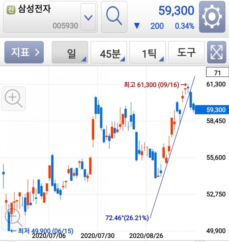 그래서 급하게 삼성전자 주가를 살펴보는 글을 올리게 됐습니다. 삼성전자에 대한 여러가지 글들이 많이 올라온다. 조금만 조정이 들어가도 매수를 하려고 했던 타이밍은 이번에도 못잡고 날아가 버렸네요.